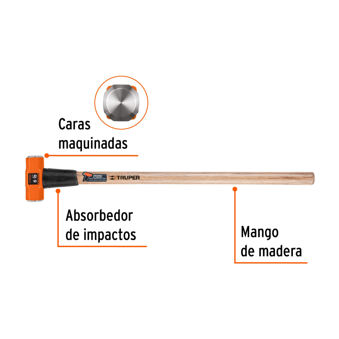 - Cabeza Forjada (6 lb): Cabeza octagonal de 6 lb (2.7 kg) forjada en acero de alta resistencia para máxima durabilidad.